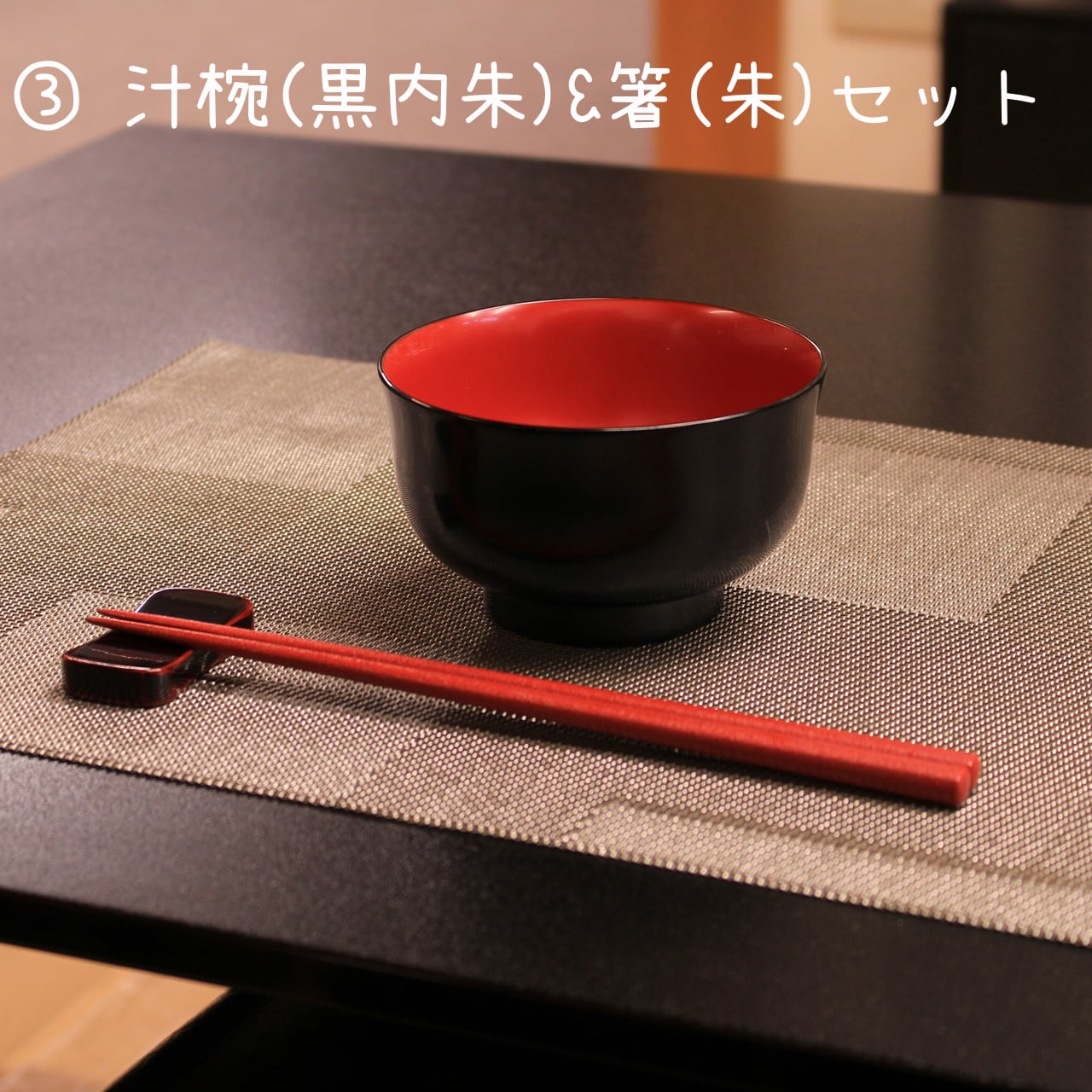 A set of bowls and chopsticks specially made in the store for those who want to buy new tableware or use lacquerware for the first time. The bowls are Wajima-nuri soup bowls, a long-selling product, and the chopsticks are non-slip and easy to use. There are four different sets of bowls and chopsticks. Please select your desired set from the tabs.