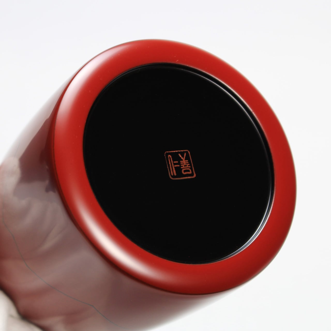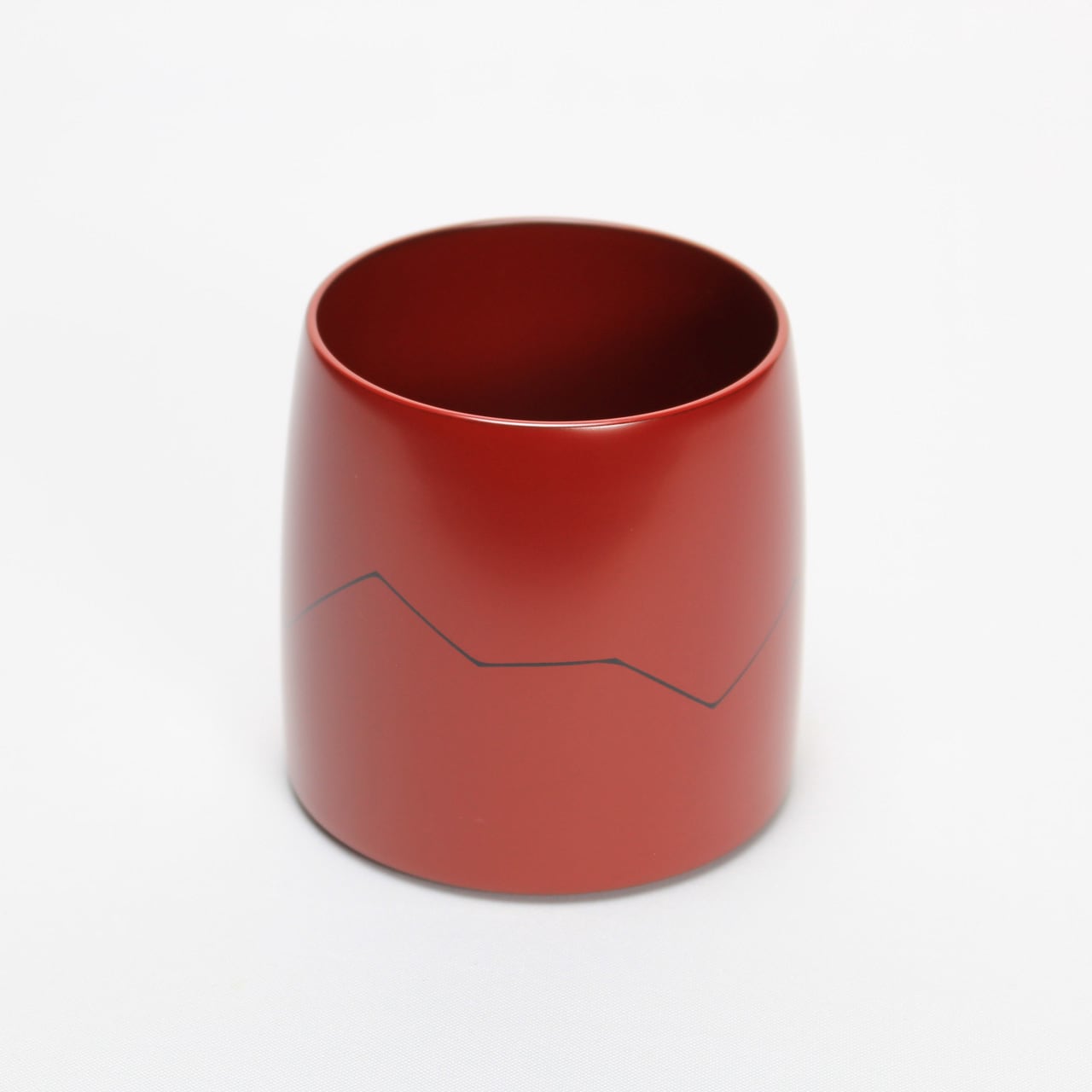 The cup is lacquered in vermilion, a soft and gentle lacquer that gives a sense of calmness and security when you hold it in your hand, and the ridges of the mountains are drawn only with lines of black lacquer. It is a simple design with minimal decoration, perfect for entertaining and for daily use.